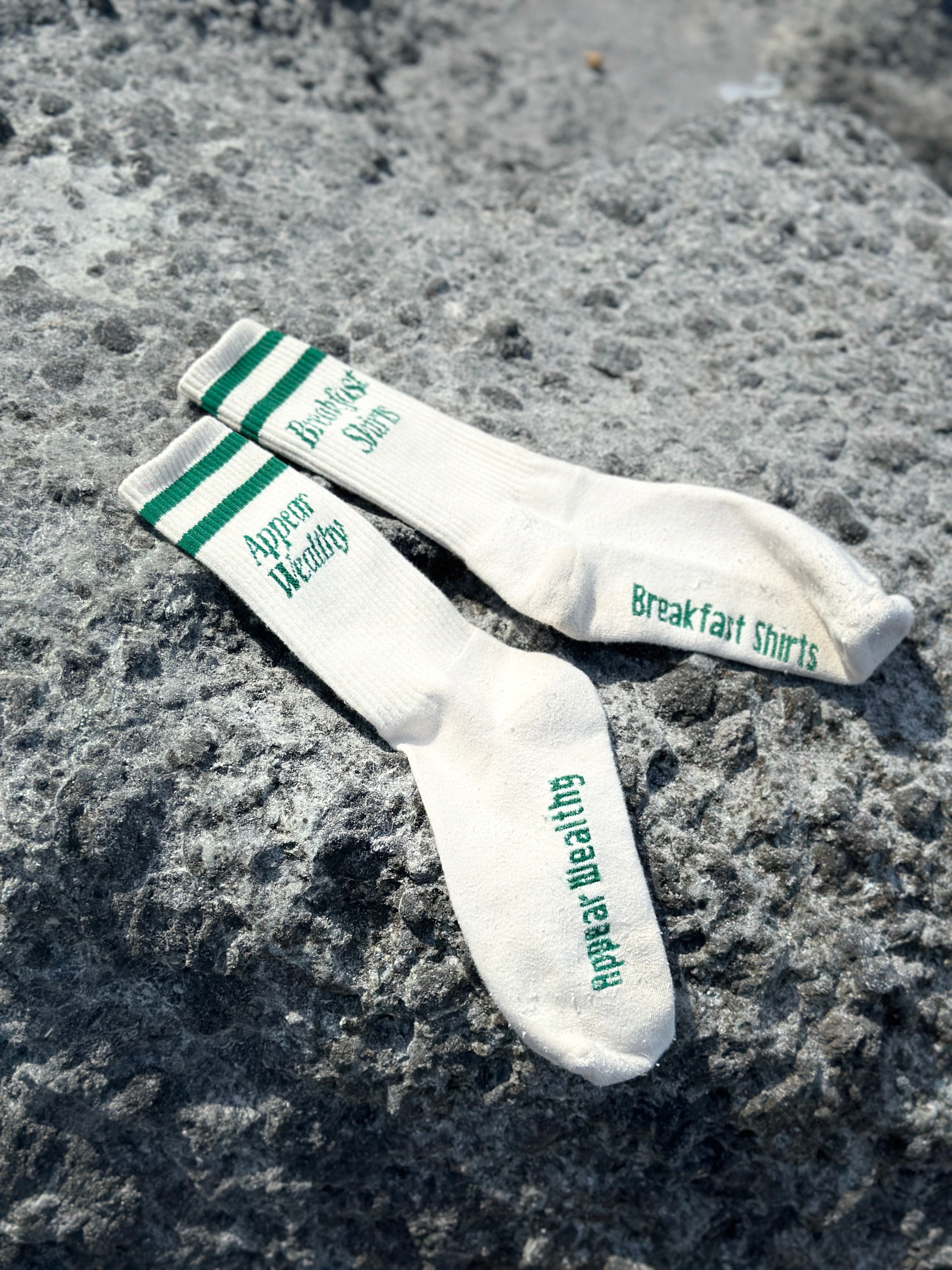 Appear wealthy with these socks reminiscent of high end tennis fashion. Bought to you by the Wealth Range at Breakfast Shirts.